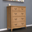 The Chadwick Tallboy features five spacious drawers ideal for organising clothing, linens, or accessories. The natural oak finish brings a warm, organic touch to the space, while the vertical design makes it a great option for smaller rooms needing smart storage solutions.