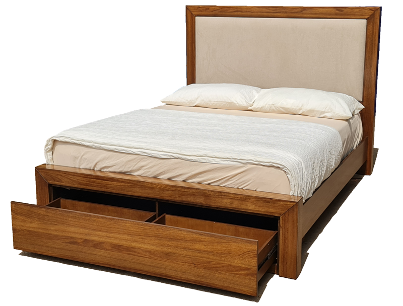 The Lisbon King Bed is the embodiment of both comfort and design excellence. This strong centerpiece not only guarantees a restful night's sleep but also serves as a striking statement piece, infusing a touch of sophistication into your bedroom decor. Two pull-out drawers underneath the bed also provide additional storage. Also available in Pebble.