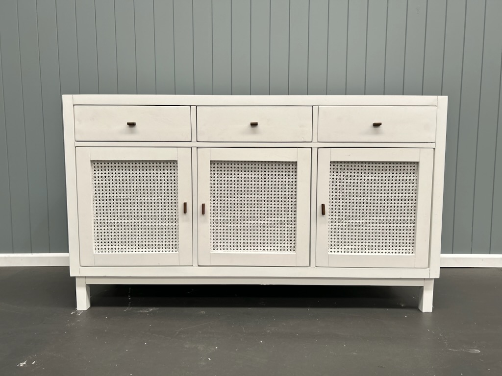 Bring a touch of Balinese elegance with the stunning Raffles 3 Door Buffet. Beautifully crafted from solid Mindi wood and featuring three spacious drawers and three doors with an internal shelf this piece combines effortless style and function.