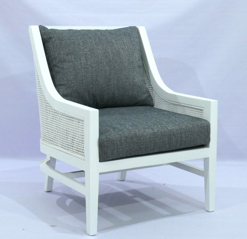 The Corfu Accent chair is crafted with a solid white mahogany wood frame for enduring strength and style. The neutral-toned cushions offer a cozy yet supportive seat, making it an ideal addition to any lounge or living area. Perfectly suited for contemporary and classic interiors alike.