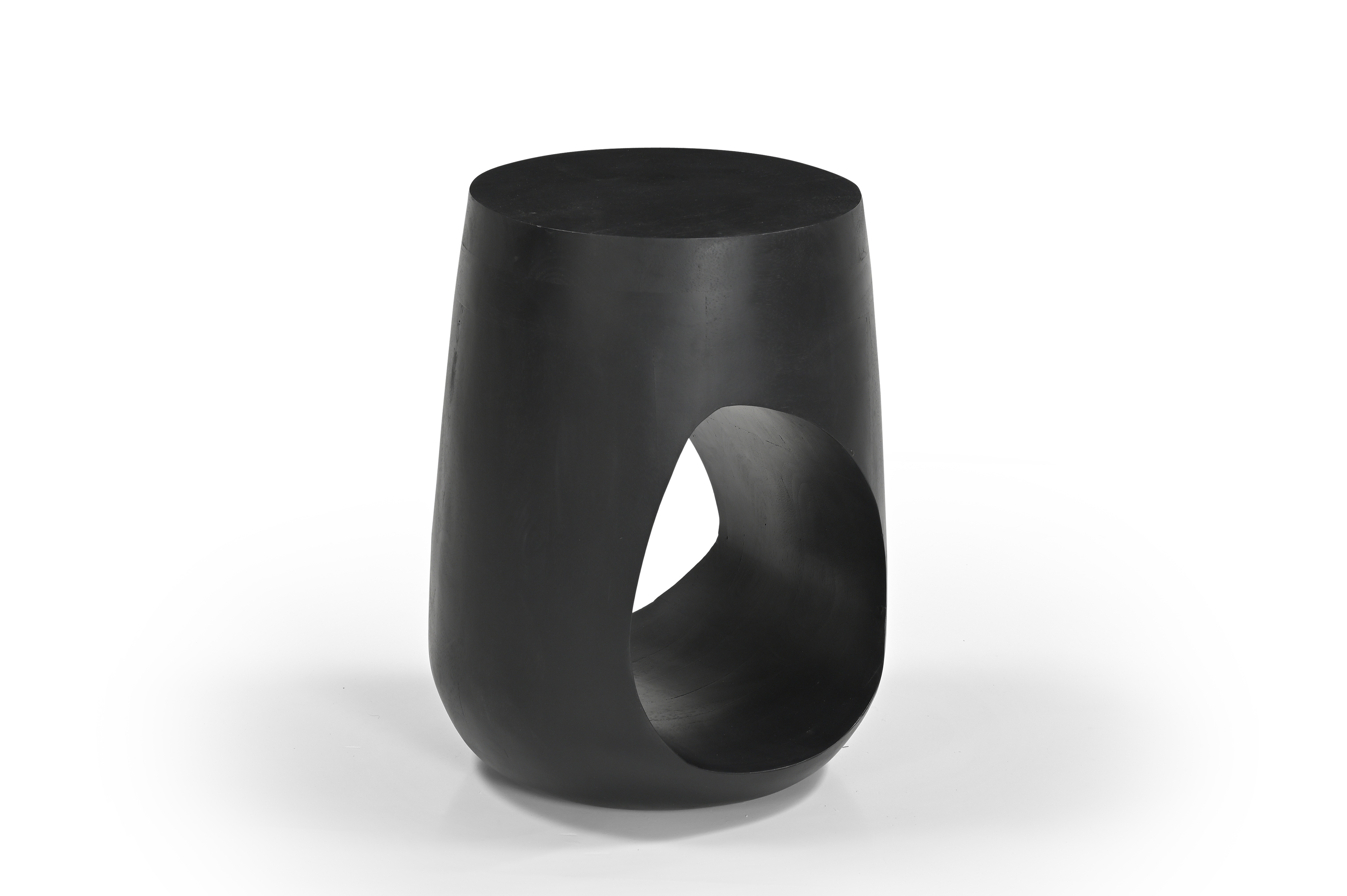 The Kindu Stool boasts a stunning design, crafted from sleek Mango Wood with a striking black finish.