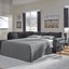 If style is the question, then this sleeper sectional is the answer. Sporting clean lines and sleek track arms, its decidedly contemporary profile is enhanced with plump cushioning and chenille-feel upholstery, so pleasing to the touch. This sleeper sectional in a rich slate is sure to complement a variety of color schemes, while the understated floral-patterned pillows bring a fresh, fashionable appeal. Crafted with quality memory foam, the pull-out full mattress comfortably accommodates overnight guests.