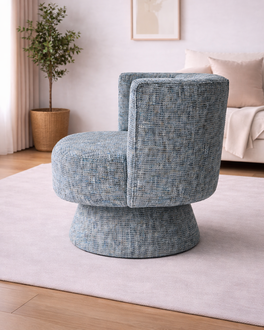 Add comfort and contemporary style to your home with the versatile Gracie Swivel Chair. Designed for both relaxation and functionality, this stylish chair features a smooth swivel base, allowing easy movement while maintaining a sleek and modern look.