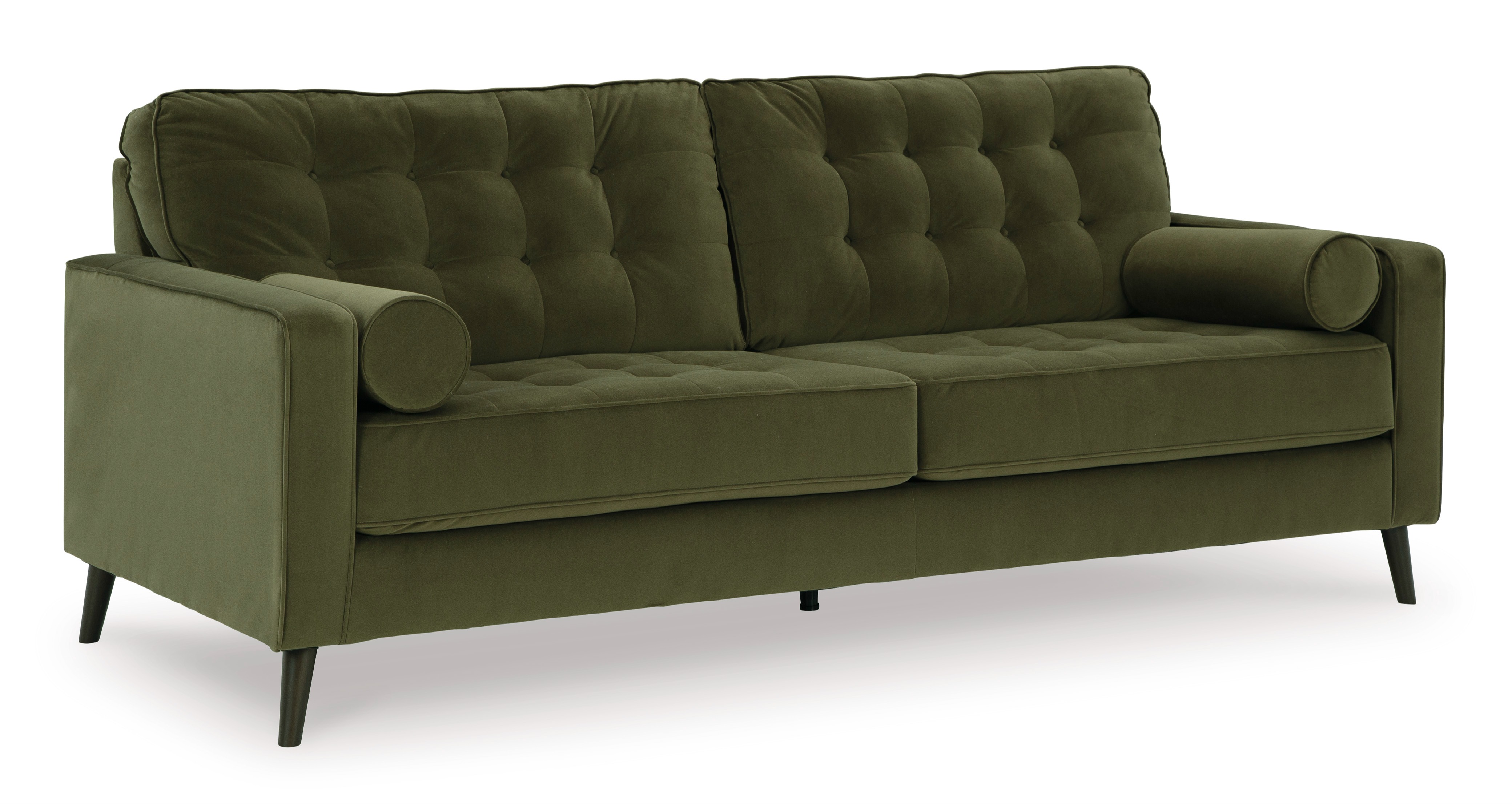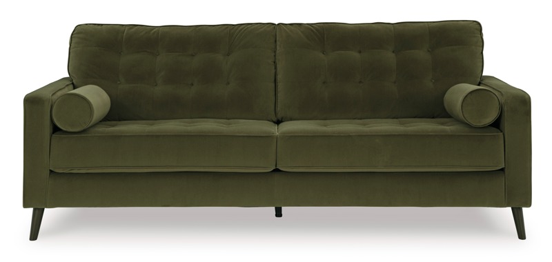 This sofa strikes the perfect balance between elevated and eclectic. Contemporary lines and a richly hued velvet upholstery keep things chic. Design details like button tufting and splay legs add mod flair. It’s sure to keep your living room luxuriously on trend—at a price that won’t break the bank.