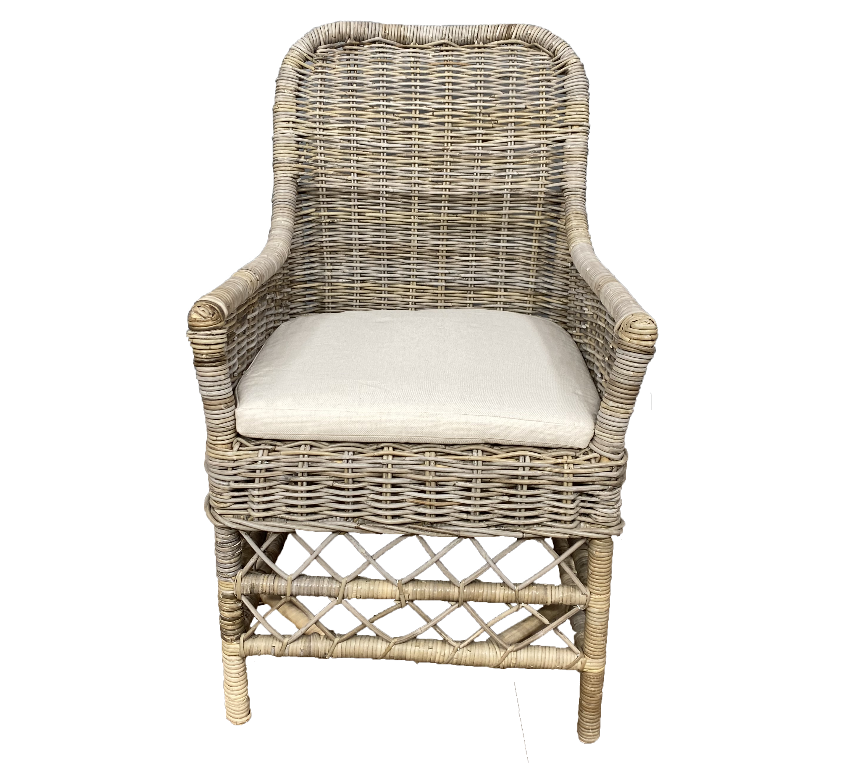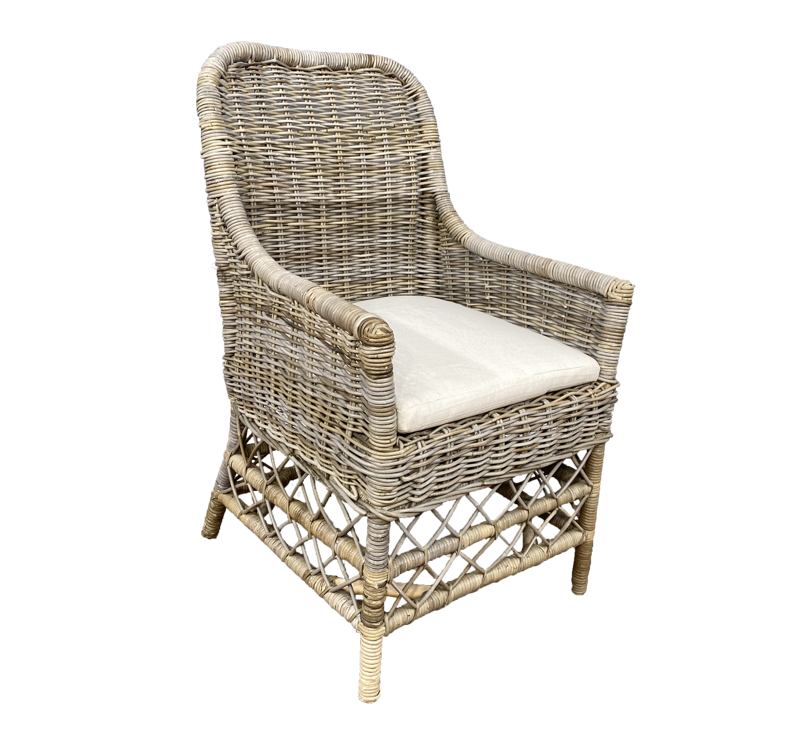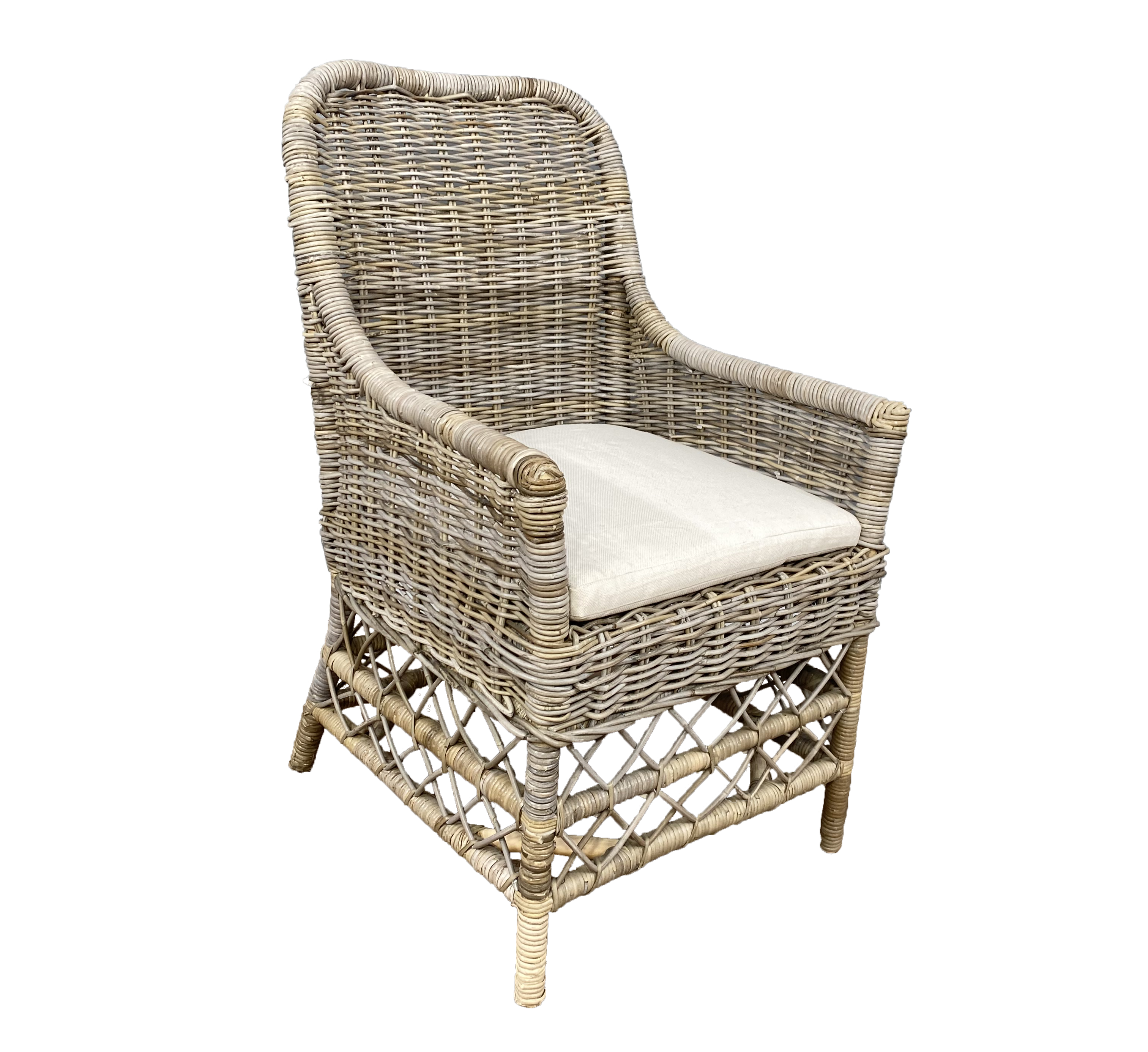 The lovely Ubud Chair will add a touch of Balinese charm to any room. Made from Rattan pole. Cushion upholstery made from linen.