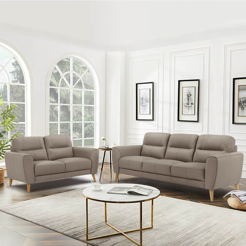 Crafted with an exquisite leather finish and complemented by elegant natural wooden feet, this range is designed to elevate any living space.