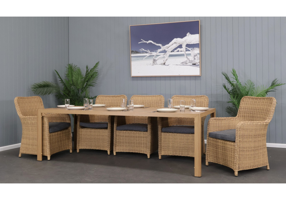 Transform your outdoor space with the elegant Capricorn Outdoor Dining Suite. This stunning 9 piece set is designed to complement any décor, combining modern aesthetics with superior comfort and durability.