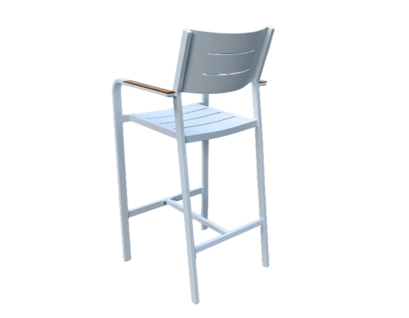 Add style and comfort to your outdoor space with the Corsica Bar Chair. Designed with a high-quality aluminum frame coated with a white powder finish and complemented by durable teak slats, this chair offers a rust-resistant, weather-resistant, and low-maintenance seating option perfect for outdoor relaxation and entertaining.