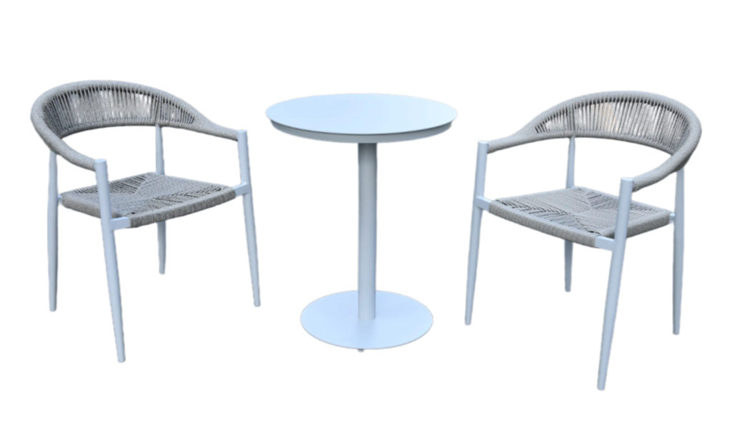 Transform your outdoor space with the Verona 3-piece Outdoor Setting, blending modern design with exceptional durability. This stylish set includes a sleek bistro table and two comfortable chairs, perfect for patios, balconies, or small garden areas.