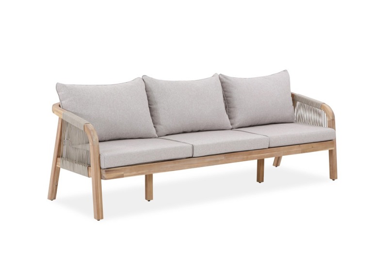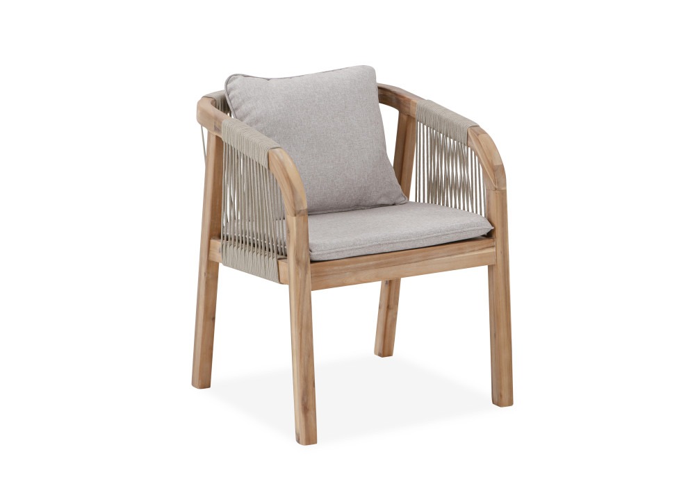 Relax in style with this Coffee Table Set. Featuring plenty of sitting space, this set is roomy without taking up too much space. The table and chairs are made from natural Acacia Wood, with soft, ivory-grey cushions.