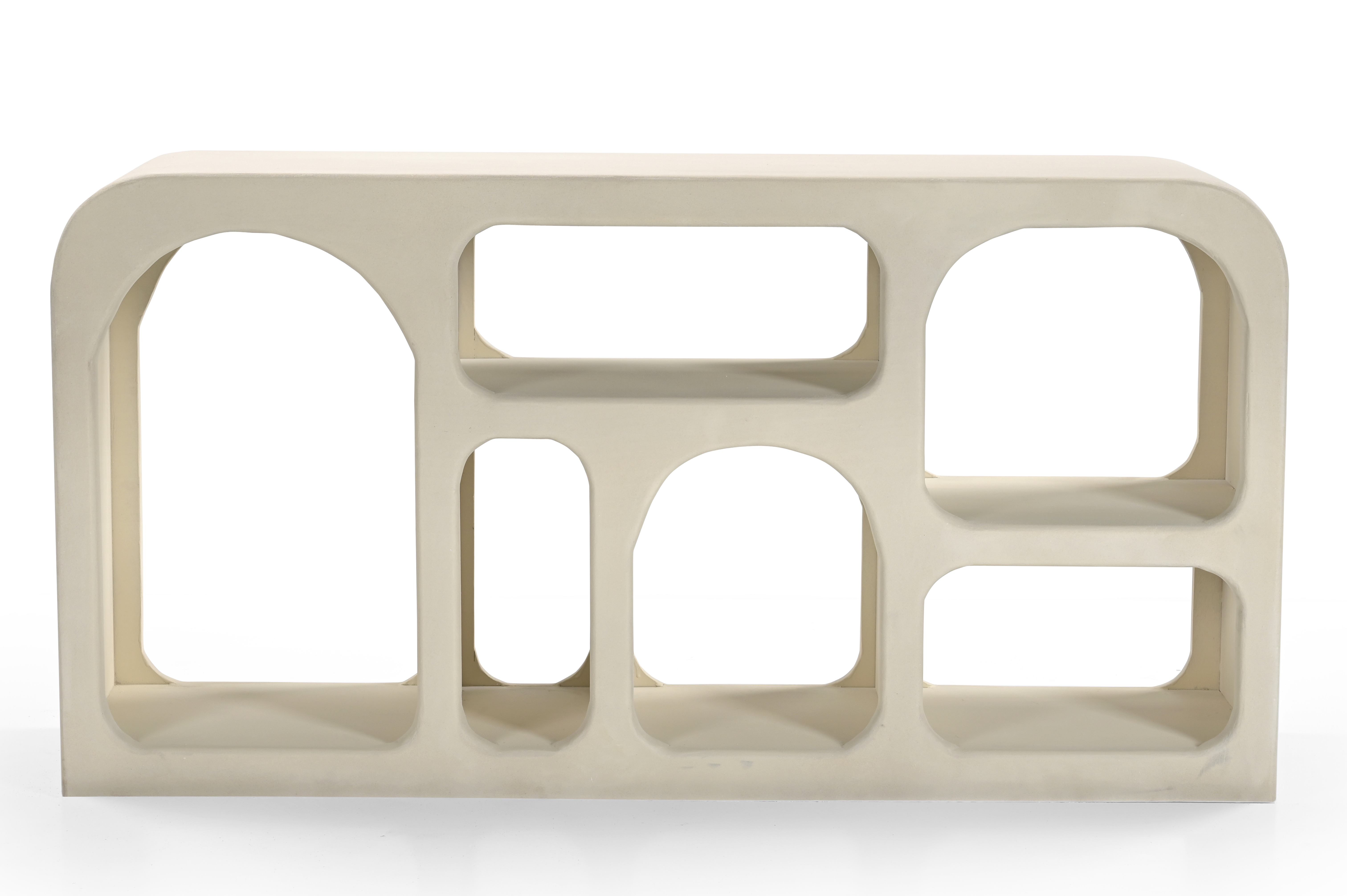 Made from beautiful Mango Wood, with a Cream concrete-finish, the Sahara Low Bookcase is an exciting piece that will make any room stand out.Products are clearance items and sold as is – some imperfections may be present.